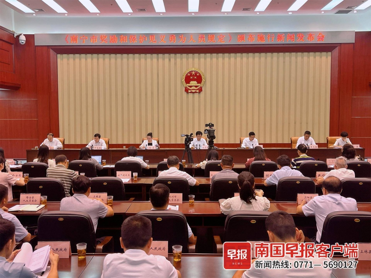 6月28日,记者从南宁市人大常委会新闻发布会获悉,《南宁市奖励和保护见义勇为人员规定》(以下简称《规定》)将于7月1日起施行。《规定》明确南宁市奖励标准,突出南宁特色保障举措,解决见义勇为人员奖励和保护工作中的实际问题。