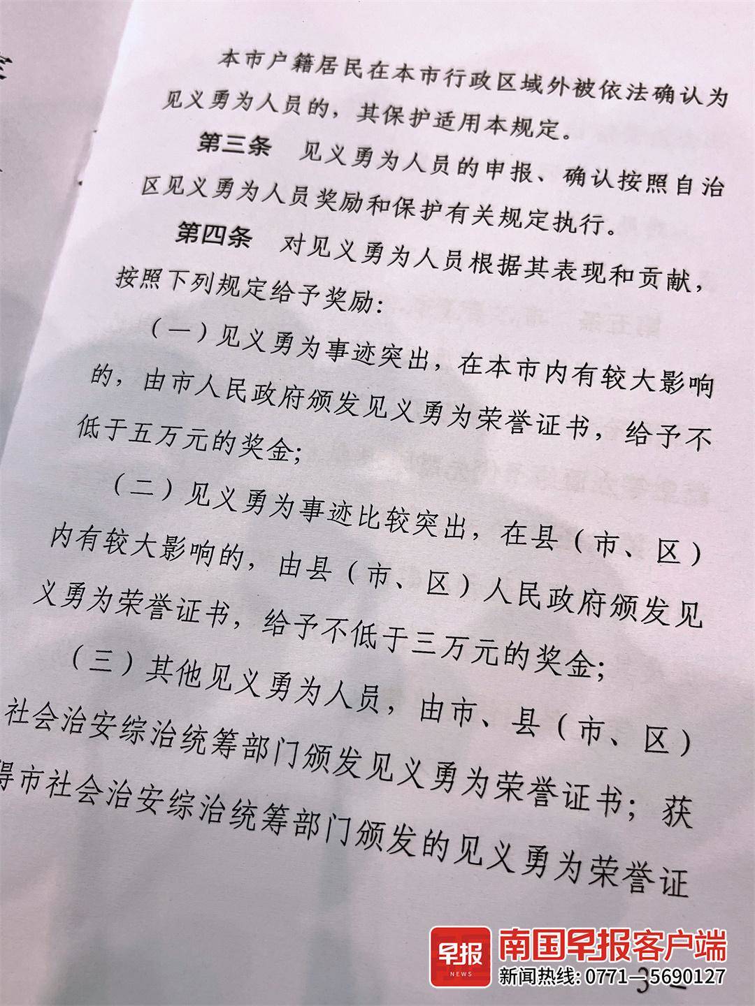 奖励不低于5万元,南宁加大见义勇为奖励力度