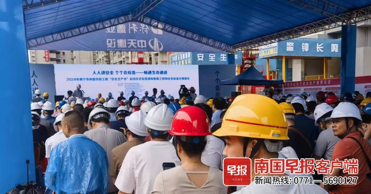 今年6月是第23个全国“安全生产月”。6月15日,南宁市住房和城乡建设局举行了2024年南宁市房屋市政工程“安全生产月”启动仪式、应急演练暨施工现场安全标准化观摩会,相关单位及企业1100余人参加了观摩活动。