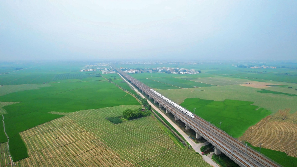 一列动车组列车行驶在衡柳线柳州区段。杨靖育 摄