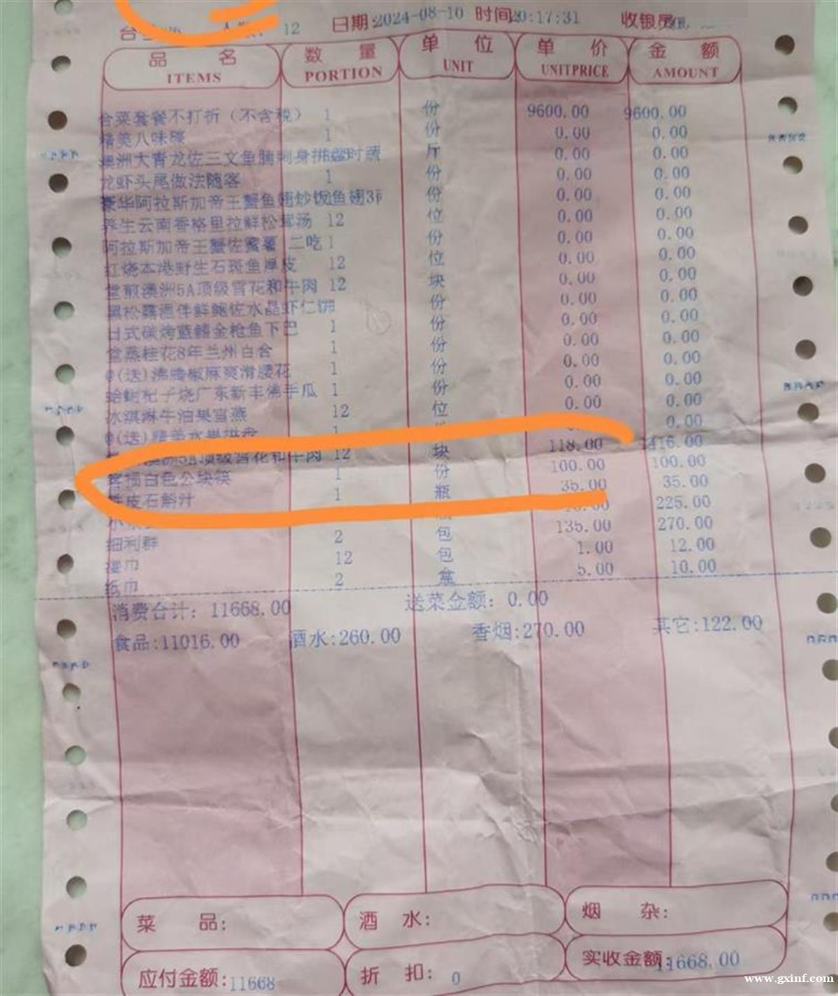 当晚消费账单(受访者供图)